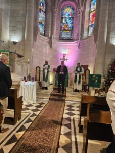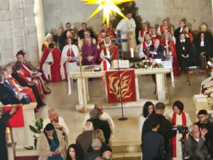 After church, the group went to Jerusalem for the consecration of Bishop Haddad. Pictures cannot do it justice especially with the scout bands playing. The service began with everyone marching from Jaffa gate to the Old City. The group was led by scout bands from the Bethlehem area. They played an assortment of Christmas songs on various instruments including bagpipes. The event was INCREDIBLY well intended so that even some processing bishops did not have seating. The pictures include not only ELCA bishops but also international Lutheran bishops. This set of pictures even includes Pastor Erik’s Lutheran bishop. The president of the Lutheran World Federation was present as well. Many of the pictures require individual explanation in which you will need to attend a presentation that Pastor Erik and Rich will hold when they return. Conversations have included situations where we would have at least two, one at St. Francis and another at Trinity Episcopal in Michigan City or a possibility of a joint one with the two congregations. If any local congregations are interested in hosting Pastor Erik and Rich when they return let them know and they can schedule something. After attending the service Pastor Erik and Rich attended a celebration for Bishop Haddad in the Bethlehem area.