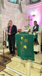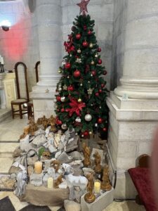 On day 3, Pastor Erik and Rich began their first day at Christmas Lutheran in Bethlehem to join the Arabic speaking congregation for Sunday worship. Pastor Ashraf and Tony led a wonderful service. The creche in the rubble was a powerful symbol started in 2024 by this congregation with the added Christmas tree to represent a change back to celebrating Christmas in all of its joy.