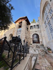 To begin Day 6, Pastor Erik and Rich began their day on the Mount of Olives on the Lutheran World Federation compound. They got to hear from people in charge of the hospital, Augusta Victoria, which specializes in cancer treatment and dialysis including having facilities for children. Many of their patients come from the West Bank but they are facing hardships due to the withholding of important funding that has allowed them to treat children or prevention of travel for the children to come and receive treatment.